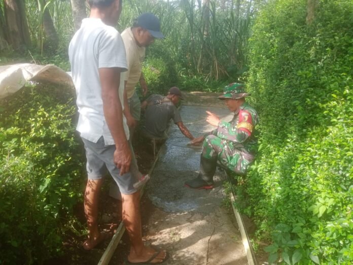 Babinsa Karanganom Dampingi Pembangunan Jalan Rabat Beton, Perkuat Akses Pertanian dan Permukiman Warga