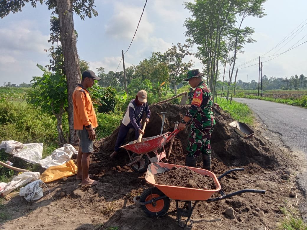 Babinsa Mangunsari dan Warga Gotong Royong Perbaiki Jalan Menuju Sawah