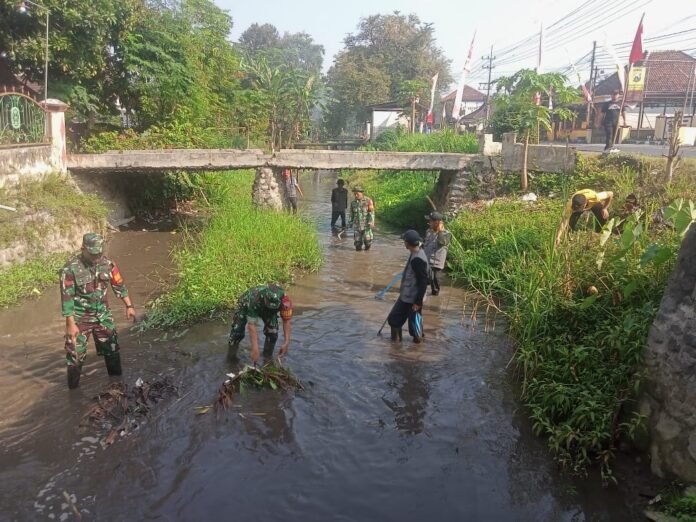 Babinsa Tekung Bersama Warga Gelar Kerja Bakti Rutin Bersihkan Aliran Sungai Repeh