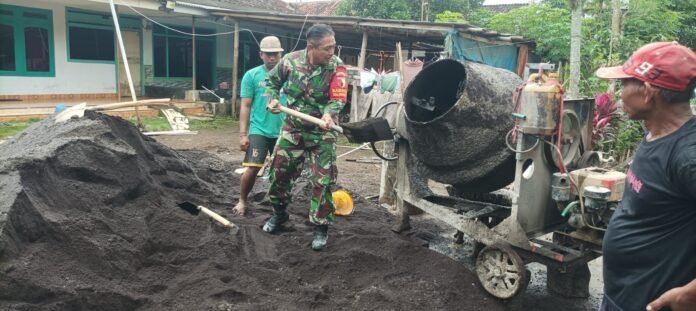 Bangun Akses Berkelanjutan, Babinsa Wonokerto Dampingi Pembangunan Jalan Rabat Beton