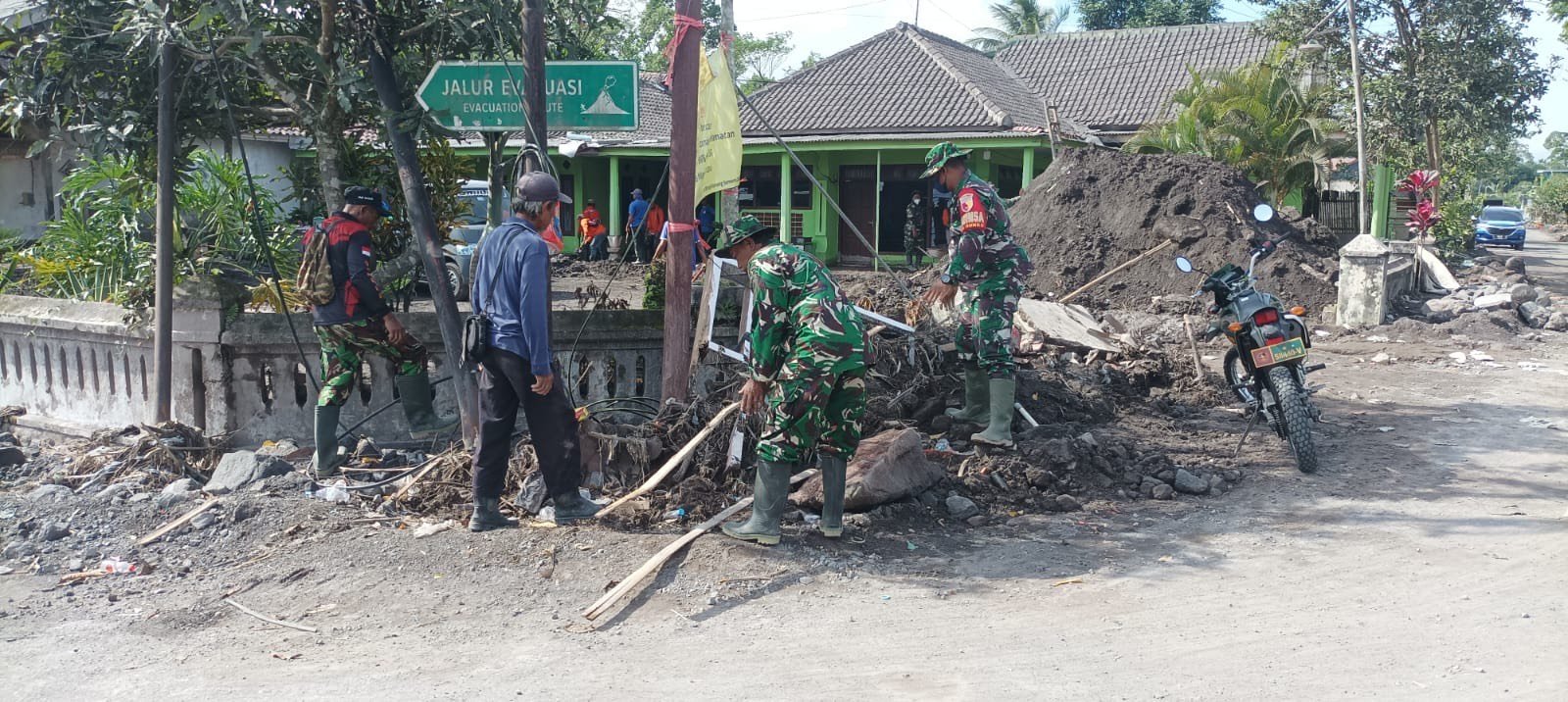 Dengan menggunakan alat manual seperti cangkul, sekop, dan sapu lidi, personel gabungan bergerak dari rumah ke rumah. Ada yang membersihkan atap, ada yang menyapu halaman, dan sebagian lainnya membantu warga memindahkan perabotan berat yang terdampak abu tebal. Bagi masyarakat, aksi ini adalah napas segar membantu meringankan beban di tengah situasi yang masih penuh ketidakpastian.