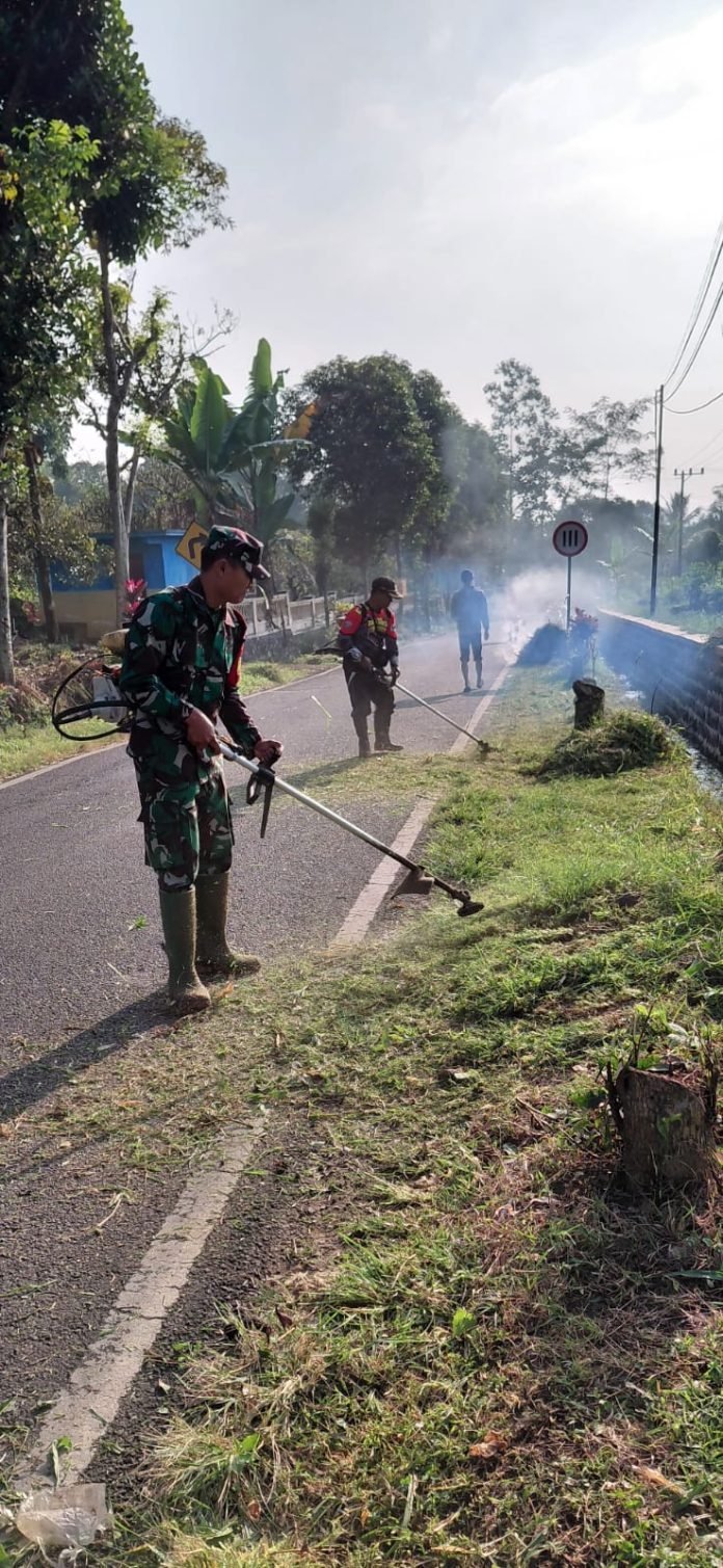 Lumajang, Dalam rangka menyambut dan memeriahkan Hari Ulang Tahun (HUT) Kemerdekaan Republik Indonesia yang ke-80, Babinsa Pagowan Koramil 0821-17/Pasrujambe, Serda Samsul Husen, bersama perangkat desa dan masyarakat melaksanakan kegiatan kerja bakti membersihkan kanan kiri jalan di wilayah Dusun Krajan, Desa Pagowan, Kecamatan Pasrujambe, Kabupaten Lumajang, Jawa Timur, pada Minggu (3/8/2025)