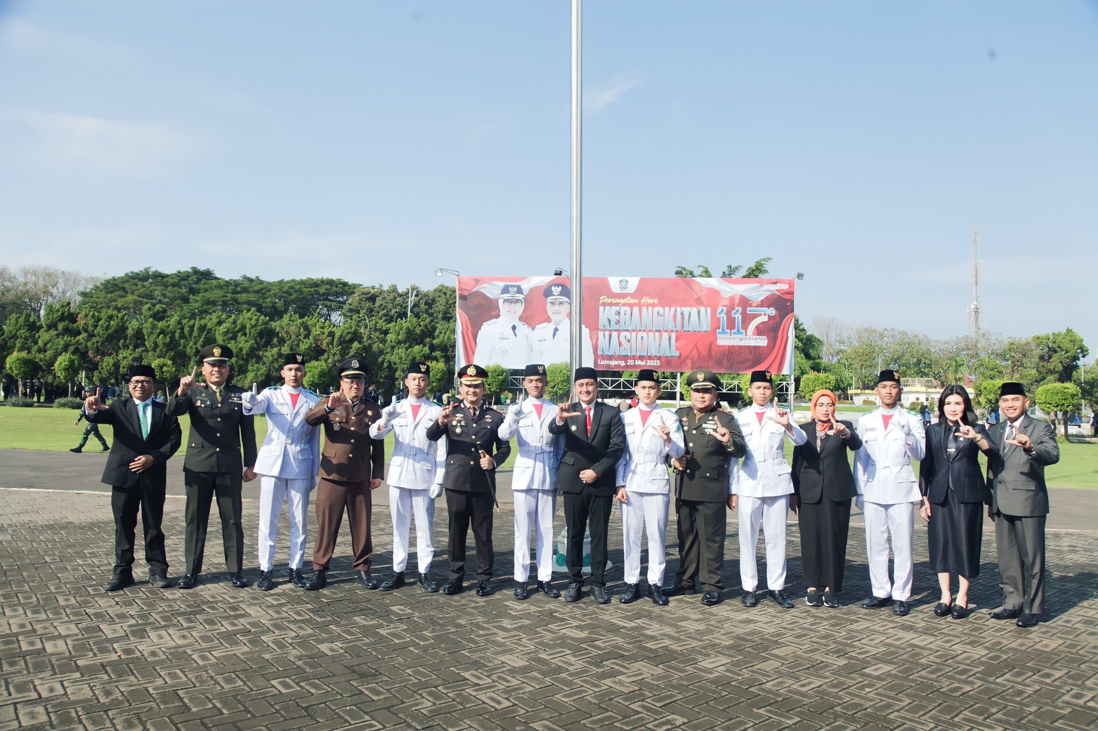 Lumajang. Dalam rangka memperingati Hari Kebangkitan Nasional (Harkitnas) ke-117, Komandan Kodim 0821/Lumajang Letkol Inf Ronny Wijaya Koesuma menghadiri upacara peringatan yang digelar di Alun-alun Kabupaten Lumajang. Senin(20/5/2025)
