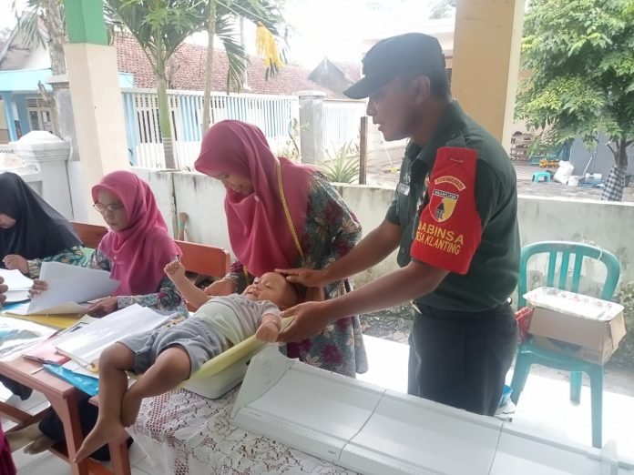 Lumajang, Sebagai bentuk kepedulian terhadap kesehatan masyarakat, Babinsa Klanting Koramil 0821-02/Sukodono, Serda Andi Purwanto, melaksanakan pendampingan dan monitoring pelayanan kesehatan di Posyandu Seruni RW 004 Dusun Kasian, Desa Klanting, Kecamatan Sukodono, Kabupaten Lumajang, Jawa Timur, pada Sabtu (26/7/2025).