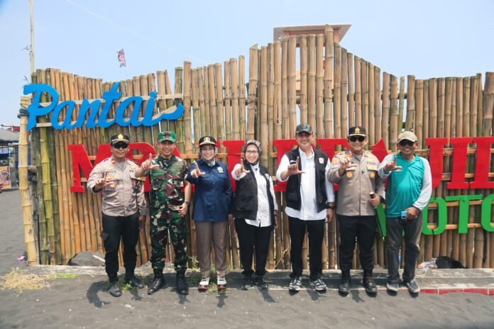 Lumajang – Forum Koordinasi Pimpinan Daerah (Forkopimda) Kabupaten Lumajang melaksanakan pemantauan langsung ke sejumlah objek wisata pantai selatan pada puncak Hari Raya Idul Fitri 1447 H, Sabtu (28/3/2026). Kegiatan tersebut dilakukan untuk memastikan keamanan dan keselamatan masyarakat yang memadati kawasan wisata dalam rangka tradisi Lebaran Ketupat.