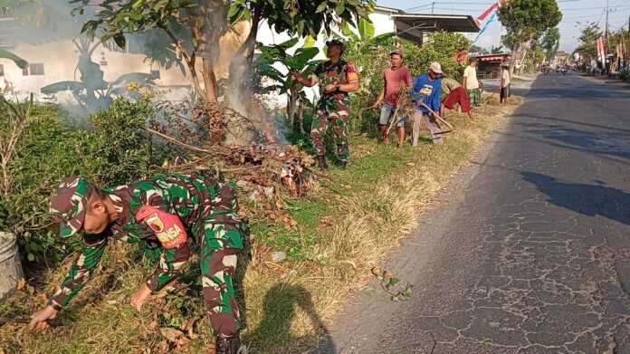 Lumajang, Wujud nyata kebersamaan antara TNI dan masyarakat Babinsa Kunir Lor Koramil 0821-13/Kunir, Sertu Harianto Dwi Cahyono, bersama warga setempat melaksanakan karya bakti pembersihan kanan kiri jalan sepanjang 800 meter di Dusun Kebonan RW 004, Desa Kunir Lor, Kecamatan Kunir, Kabupaten Lumajang, Jawa Timur. pada Jumat (22/8/2025).