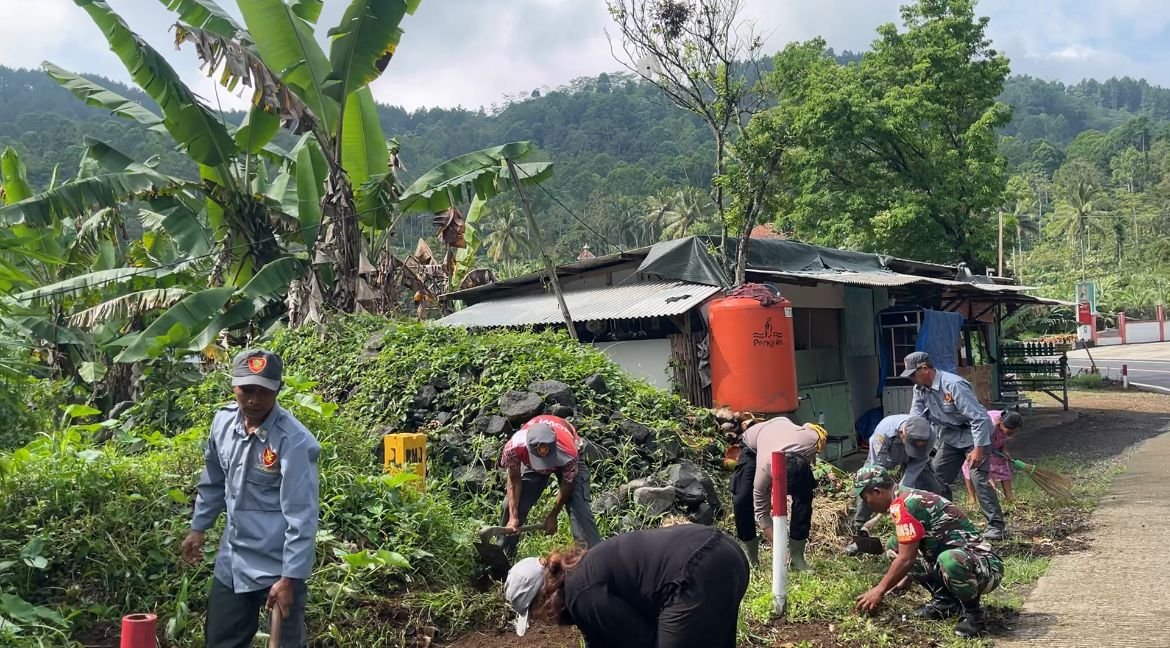 Lumajang, Dalam rangka menyambut Hari Ulang Tahun (HUT) ke-80 Kemerdekaan Republik Indonesia, Babinsa Sumberurip Koramil 0821-14/Pronojiwo, Koptu M. Arif Wibowo, bersama elemen masyarakat melaksanakan kerja bakti membersihkan lingkungan di RT 004 RW 002 Dusun Sriti, Desa Sumberurip, Kecamatan Pronojiwo, Kabupaten Lumajang, Jawa Timur, pada Kamis (1/8/2025).