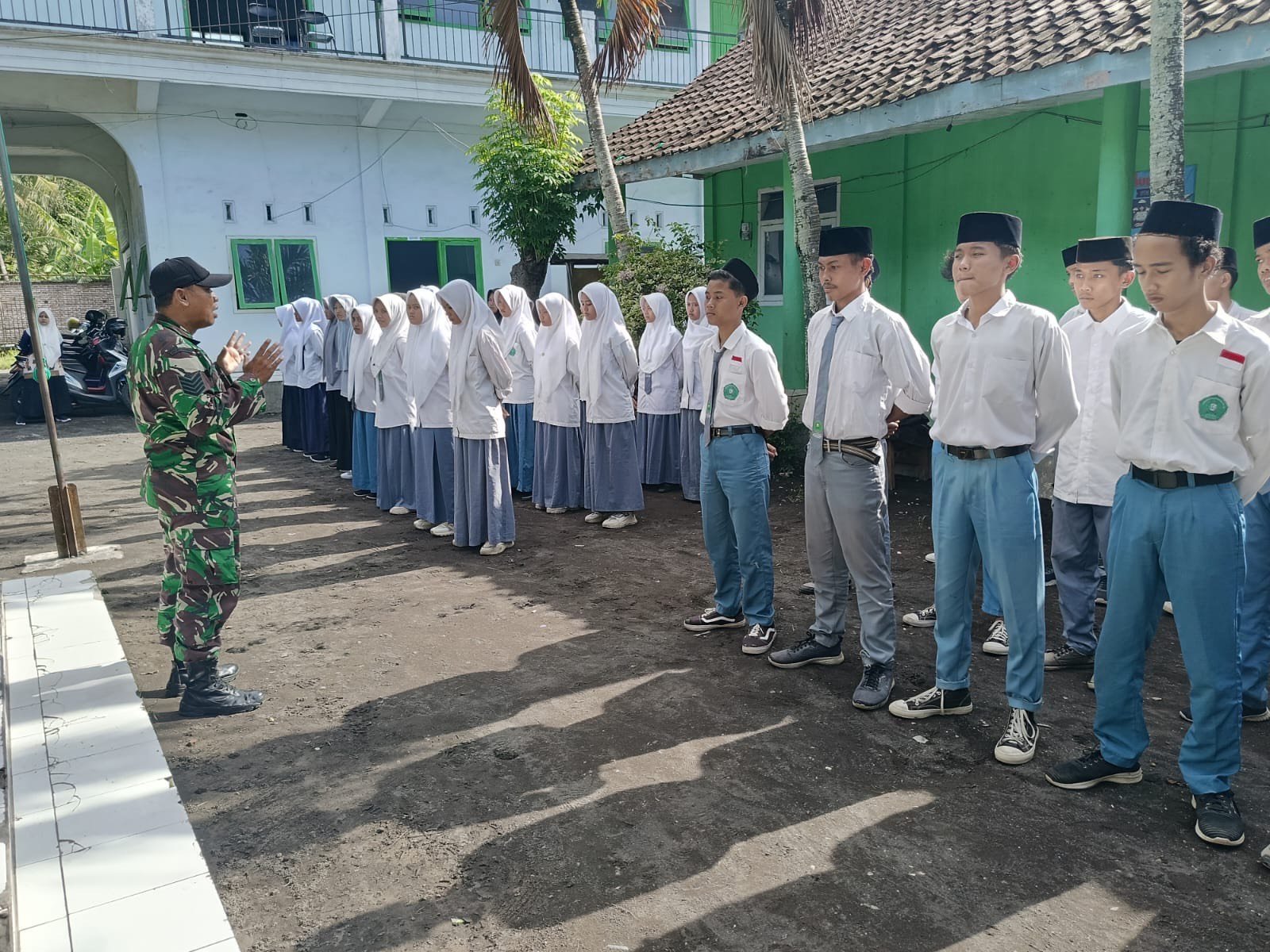 Lumajang – Wujud kepedulian TNI dalam membina generasi muda terus ditunjukkan melalui kegiatan pembinaan teritorial di wilayah. Babinsa Darungan Koramil 0821-11/Yosowilangun, Sertu Setiawan Herry Sutanto, mendampingi Bati Komsos Koramil 0821-11/Yosowilangun Serma Tri Priyo Santoso dalam kegiatan pembinaan dan pelatihan materi Peraturan Baris Berbaris (PBB) kepada siswa SMA Al Ikhlas Al Muhdhlor, Desa Darungan, Kecamatan Yosowilangun, Kabupaten Lumajang, Jawa Timur, Rabu (4/2/2026).