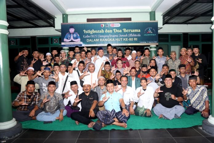 Lumajang, Dalam rangka menyambut Hari Ulang Tahun (HUT) ke-80 Kemerdekaan Republik Indonesia, Kodim 0821/Lumajang bekerja sama dengan Jamaah Lillahi Ta’ala menggelar istighosah dan doa bersama, bertempat di halaman Makodim 0821/Lumajang, Senin (11/8/2025) malam.