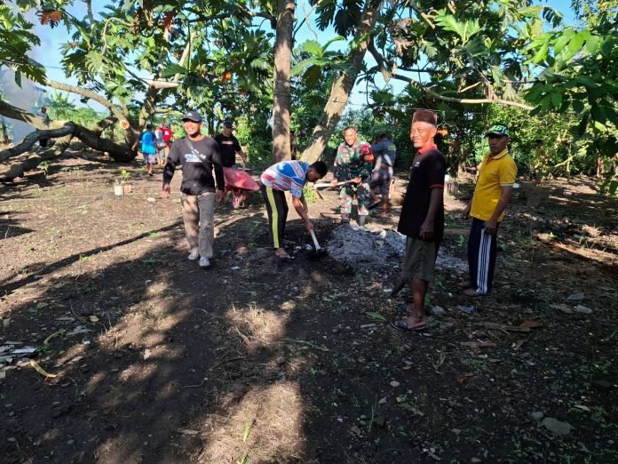 Lumajang, Dalam rangka menyambut dan mempersiapkan acara adat Grebek Suroyoso yang akan digelar pada 1 Muharram 1446 H atau bertepatan dengan 5 hingga 6 Juni 2025 mendatang, Babinsa Yosowilangun Kidul Koramil 0821-11/Yosowilangun, Serma Tri Priyo Santoso bersama pemerintah desa (Pemdes) dan warga setempat menggelar kegiatan kerja bakti membersihkan area pesarean (makam) Mbah Margo Joyo, Desa Yosowilangun Kidul Kecamatan Yosowilangun Kabupaten Lumajang, Jawa Timur. Kamis (29/5/2025).