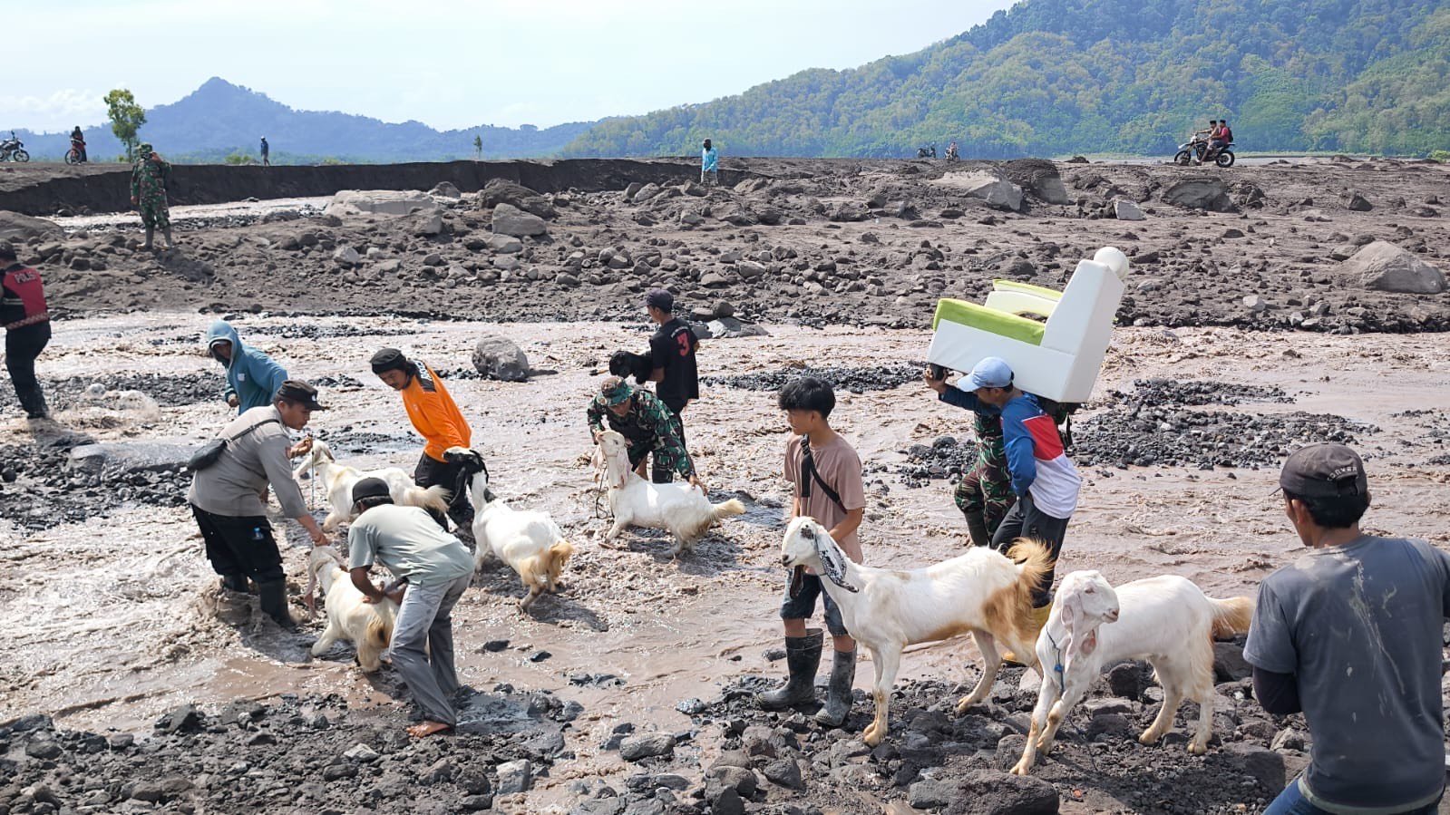 Para personel Kodim dan relawan terlihat bahu membahu mengangkat dokumen penting, barang elektronik, serta perabot rumah tangga yang masih bisa diselamatkan. Proses evakuasi dilakukan dengan penuh kehati-hatian mengingat beberapa rumah masih dalam kondisi licin dan berlumpur akibat terjangan banjir lahar dingin.