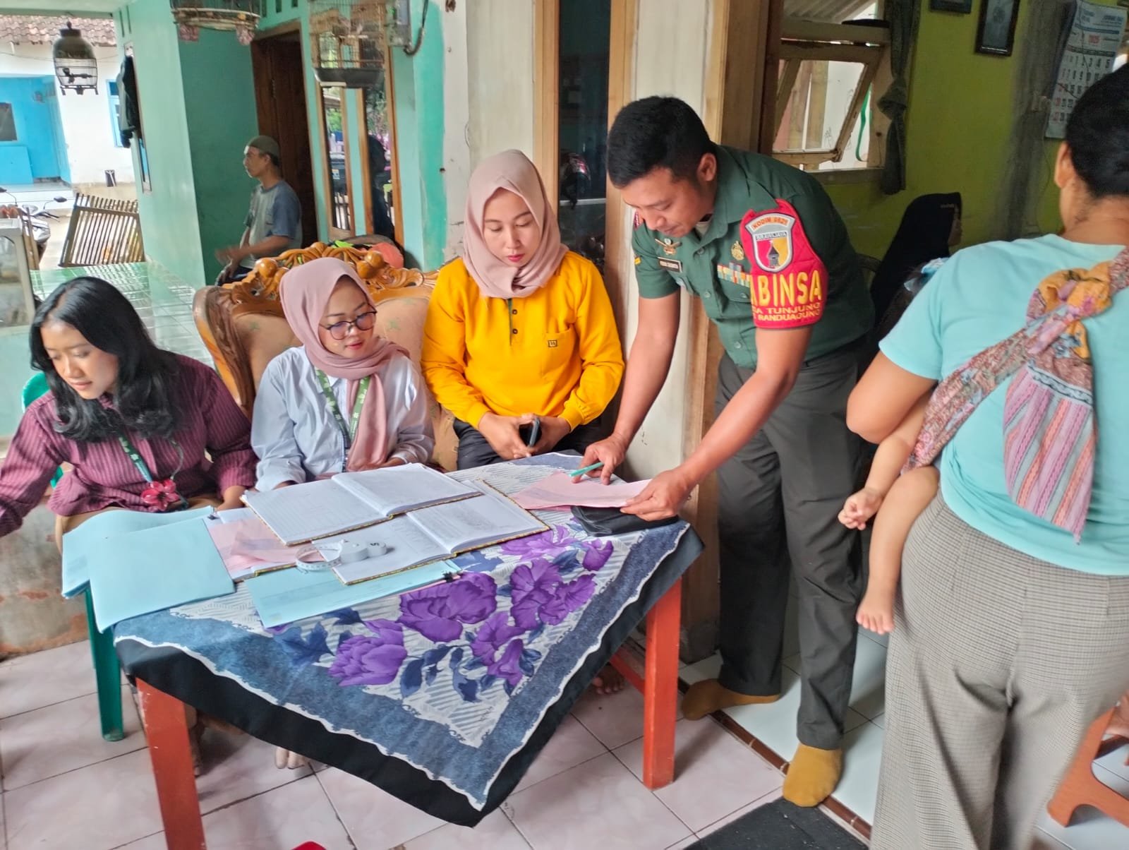 Lumajang, Bentuk kepedulian TNI terhadap kesehatan masyarakat, Babinsa Tunjung Koramil 0821-07/Randuagung, Serda Ferik Sasmita, yang turut mendampingi pelaksanaan kegiatan pelayanan kesehatan di Posyandu Melati, Dusun Krajan RT 005 RW 010, Desa Tunjung, Kecamatan Randuagung, Kabupaten Lumajang, Jawa Timur, Selasa (8/7/2025).