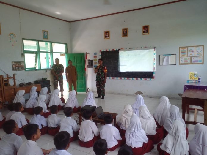 Lumajang, Dalam upaya memperkuat nilai-nilai kebangsaan di kalangan pelajar sejak usia dini, Babinsa Rowokangkung Koramil 0821-16/Rowokangkung, Sertu Suwardi, melaksanakan kegiatan sosialisasi Projek Penguatan Profil Pelajar Pancasila (P5) kepada siswa SDN Rowokangkung 02, Kecamatan Rowokangkung, Kabupaten Lumajang, Jawa Timur, Rabu (21/5/2025).