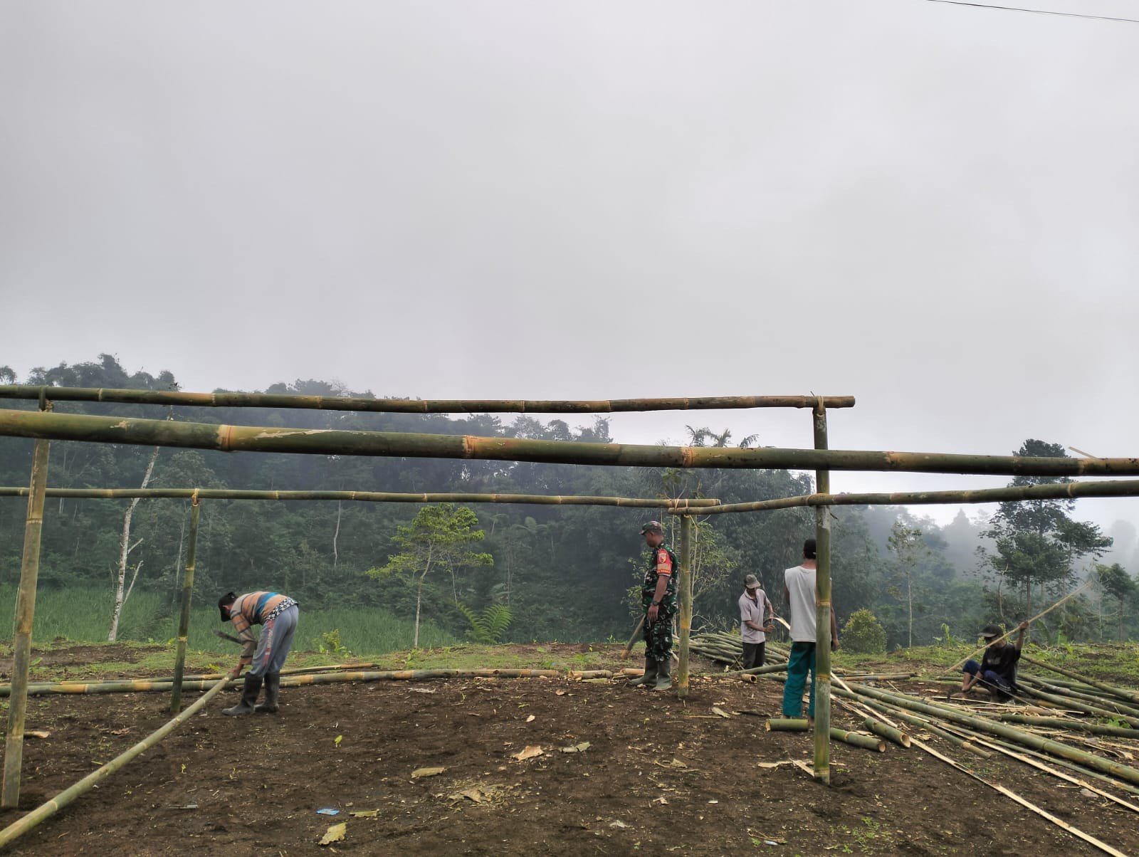 Kegiatan kerja bakti tersebut dilakukan sebagai bagian dari persiapan pembangunan masjid agar material bangunan terlindungi dari cuaca sekaligus tertata dengan rapi. Kehadiran Babinsa di tengah-tengah warga mendapat sambutan hangat dan menambah semangat gotong royong masyarakat.