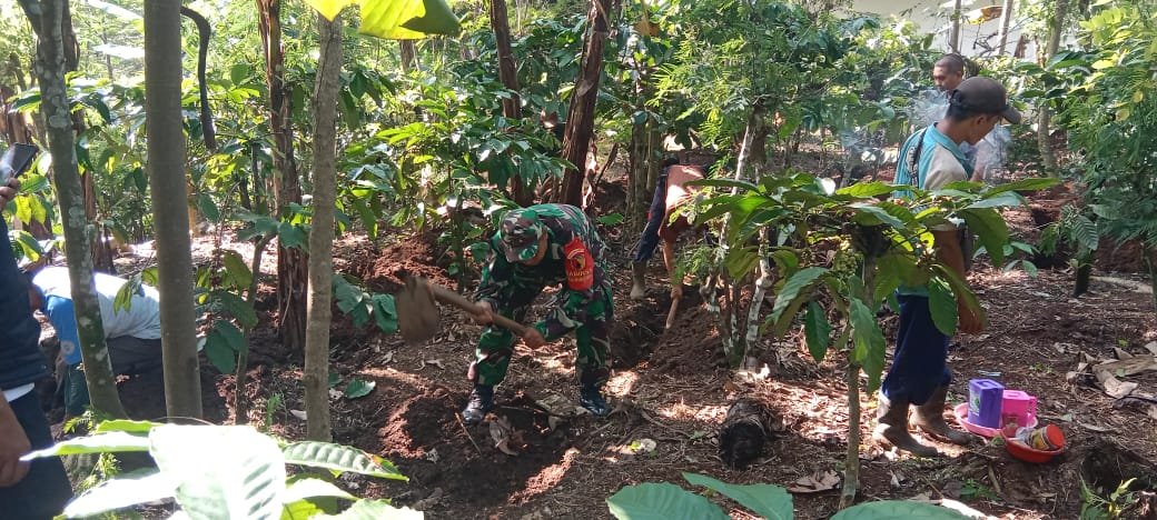 Lumajang, Dalam upaya menjaga stabilitas keamanan wilayah dan mendukung ketahanan pangan, Babinsa Wonokerto Koramil 0821-04/Gucialit, Serma Sugiyanto, melaksanakan kegiatan sosialisasi keamanan serta pendampingan pembuatan lubang pupuk organik bersama kelompok tani (Gapoktan) Karya Bakti di Dusun Wonoasih RT 003 RW 002, Desa Wonokerto, Kecamatan Gucialit, Kabupaten Lumajang, Jawa Timur, pada Kamis (5/6/2025).