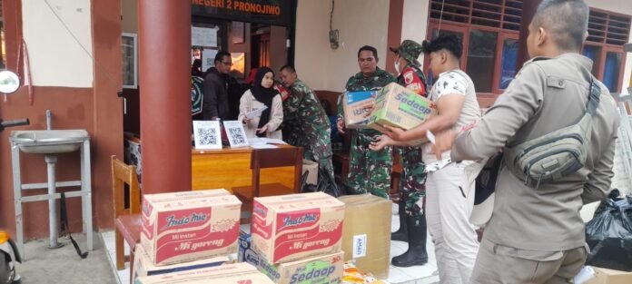 Lumajang – Upaya penanggulangan dampak erupsi Gunung Semeru di Kecamatan Pronojiwo terus diperkuat melalui langkah cepat yang dilakukan TNI bersama pemerintah daerah dan unsur terkait. Pada Minggu (30/11/2025), jajaran Kodim 0821/Lumajang kembali turun langsung ke lapangan untuk memastikan alur penerimaan bantuan berjalan tertib, terkoordinir, dan tepat sasaran.