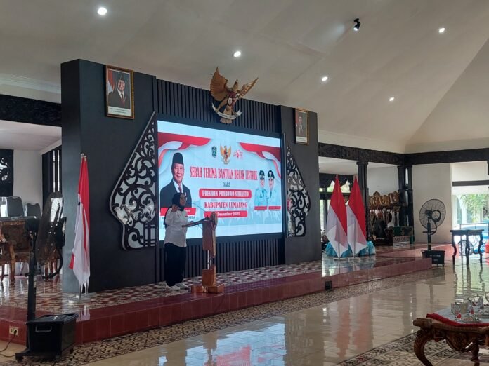 Lumajang — WS Kasdim 0821/Lumajang, Kapten Inf Wahyutomo, menghadiri kegiatan Serah Terima Bantuan Becak Listrik dari Presiden Republik Indonesia bekerja sama dengan Yayasan Gerakan Solidaritas Nasional (GSN). Kegiatan tersebut berlangsung di Pendopo Arya Wiraraja, Kelurahan Ditotrunan, Kecamatan Lumajang, Kabupaten Lumajang, Sabtu (13/12/2025).