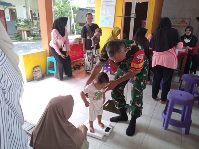 Lumajang – Komitmen TNI AD dalam mendukung peningkatan kualitas kesehatan masyarakat terus diwujudkan melalui peran aktif di wilayah binaan. Babinsa Kelurahan Jogotrunan Koramil 0821-01/Lumajang, Sertu Maer Iswanto, yang melaksanakan pendampingan kegiatan pelayanan kesehatan masyarakat di Posyandu Gerbangmas “Edelwais”, bertempat di Balai Posyandu RW 18 Perum Graha Semeru, Jalan Demokrasi RT 004 RW 018, Kelurahan Jogotrunan, Kecamatan Lumajang, Kabupaten Lumajang, Jawa Timur, pada Selasa (20/1/2026).